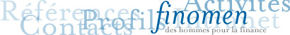 Finomen Conseil réalise des missions en informatique bancaire, reconnues par des banques de référence, d'expertise en réglementation bancaire et comptabilité financière, d'assistance à maîtrise d'ouvrage et de mise en oeuvre de progiciels bancaires. | |||